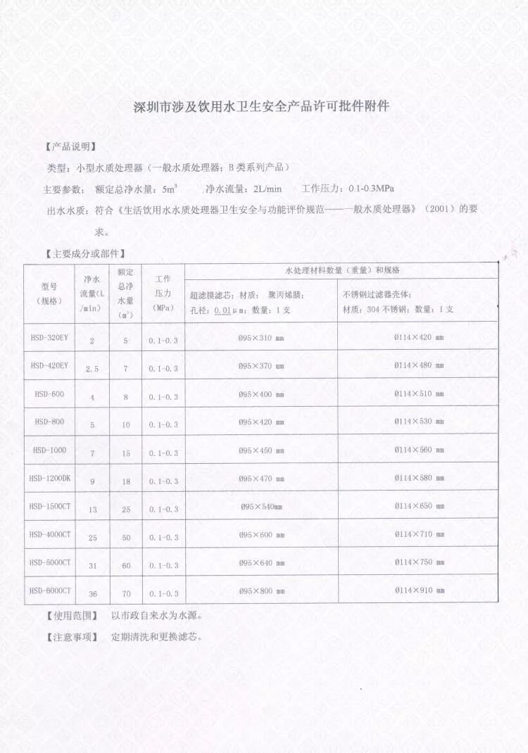 前段时日,汉斯顿HSD-6000CT型超滤净水机,包括HSD-320EY、HSD-420EY、HSD-600、HSD-800、HSD-1000、HSD-1200DK、HSD-1500CT、HSD-4000CT、HSD-5000CT、HSD-6000CT型号的净水器,已获得涉水批件。批准文号:粤卫水字(2018)-02-第S9534号