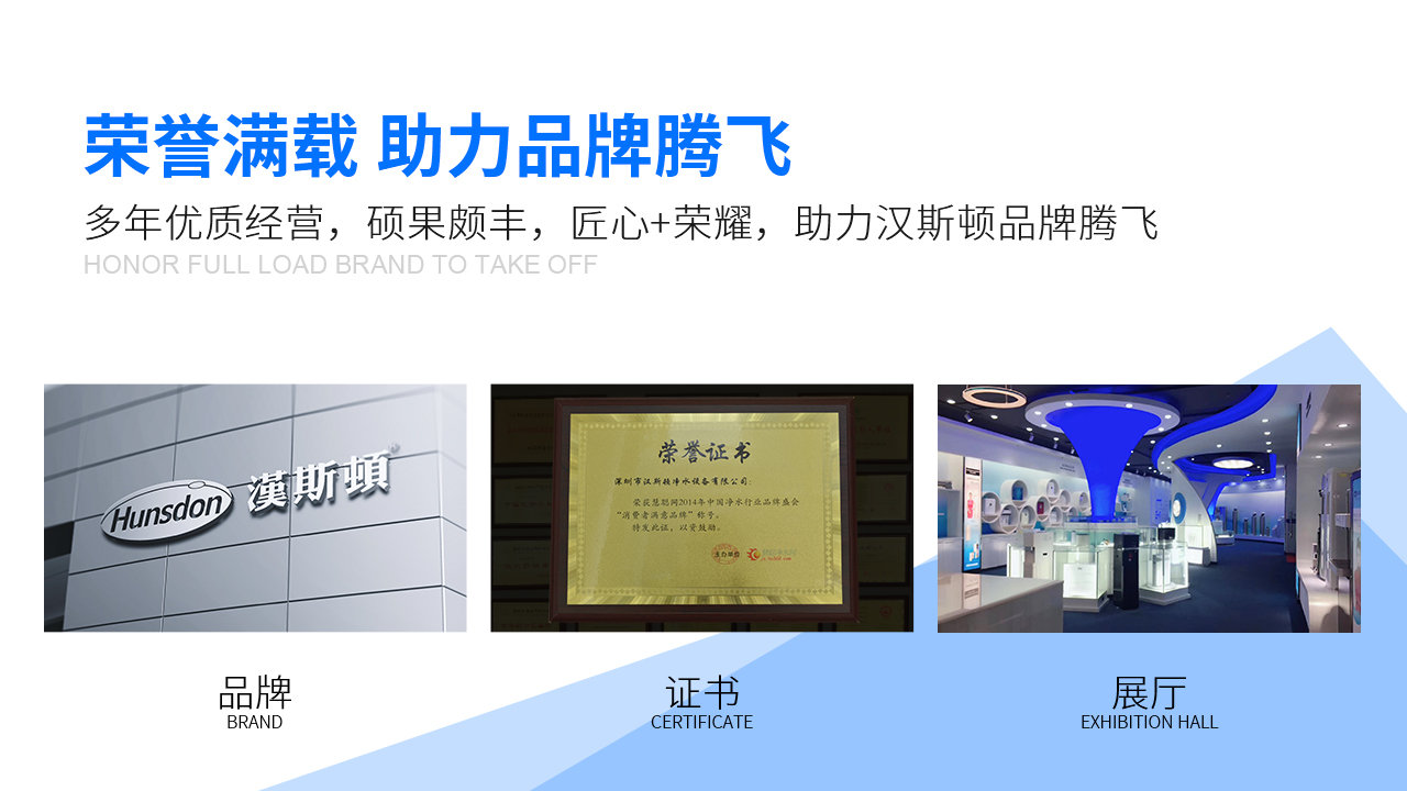 多年的不懈耕耘,也让汉斯顿达收获了诸多荣誉。如,“十大知名品牌”“中国优选品牌”“渠道商信任品牌”以及连续5届的“消费者满意品牌”等荣誉称号,2018年,又获“广东省净水行业创新发展企业”近日,又再次被评为“全国质量诚信标杆企业”“全国净水设备行业质量领先品牌”“全国质量检验稳定合格产品”以及中国质量技术监督颁发的“质量品牌优秀上榜企业”等多项权威荣誉认证。