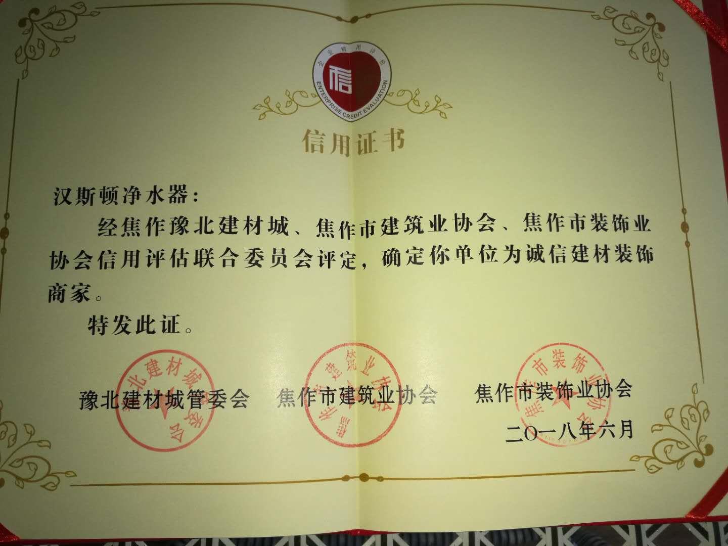 祝贺汉斯顿河南焦作代理商,荣获多项荣誉证书