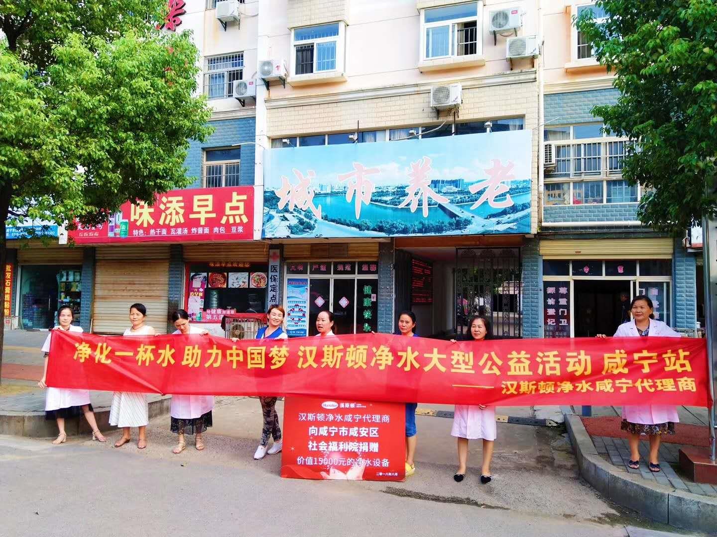 汉斯顿咸宁代理商向咸宁市咸安区社会福利院和夕阳红福利院共捐赠价值30000元的净水设备及其他生活用品。