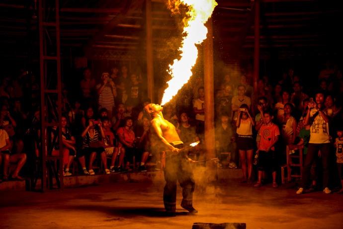 除了“娶妻”活动,还有瑶家阿贵(未成婚的小伙子)表演的踩钢刀、火烧身以及喷火等精彩活动,让大家亲身感受瑶寨的万种风情和瑶族同胞的款款热情。