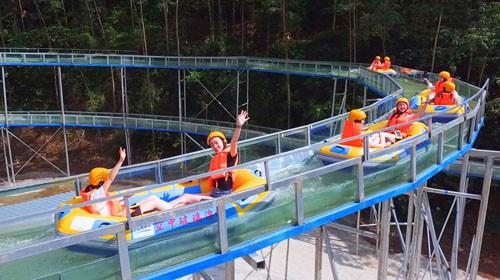 清远是中国漂流之乡,而龙腾峡作为清远漂流的新高度,全国首家玻璃漂流接驳自然峡谷河道的漂流,其落差之大,极高的惊险程度被誉为:玻璃漂流之王。