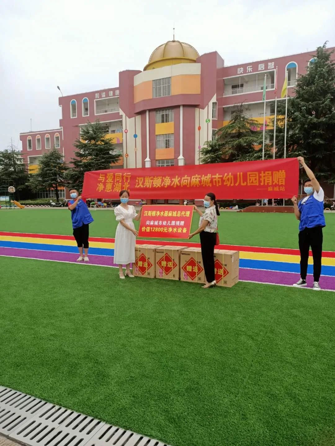 “与爱同行,净惠湖北”。2020年8月25日,在汉斯顿党支部的领导下,汉斯顿驻麻城总代理开展爱心公益活动,为麻城市幼儿园捐赠一批净水设备,为该校幼儿的饮水健康提供了重要保障。